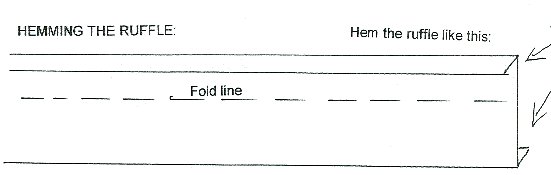 Note: To be really precise about this, you should hem the strip so that each hem turns to a different side of the cloth. That way, when you fold the strip before gathering, both hems will end up oriented to the same side of the finished ruffle. But if you overlooked this nicety, as long as your hems are fine enough and neat enough, it’s probable that nobody will notice!